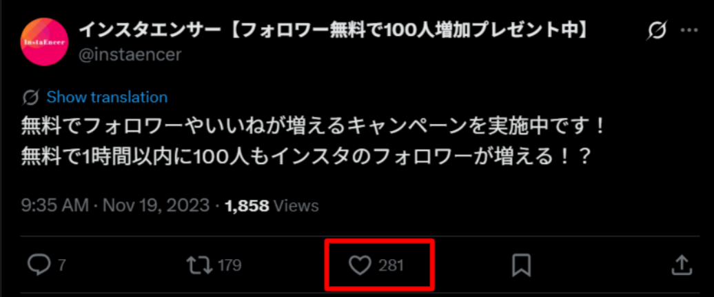 「いいね」と「インプレッション」の両方をバランスよく増やすことで、投稿全体の数値に一貫性が生まれ、より自然に見せることができます。
