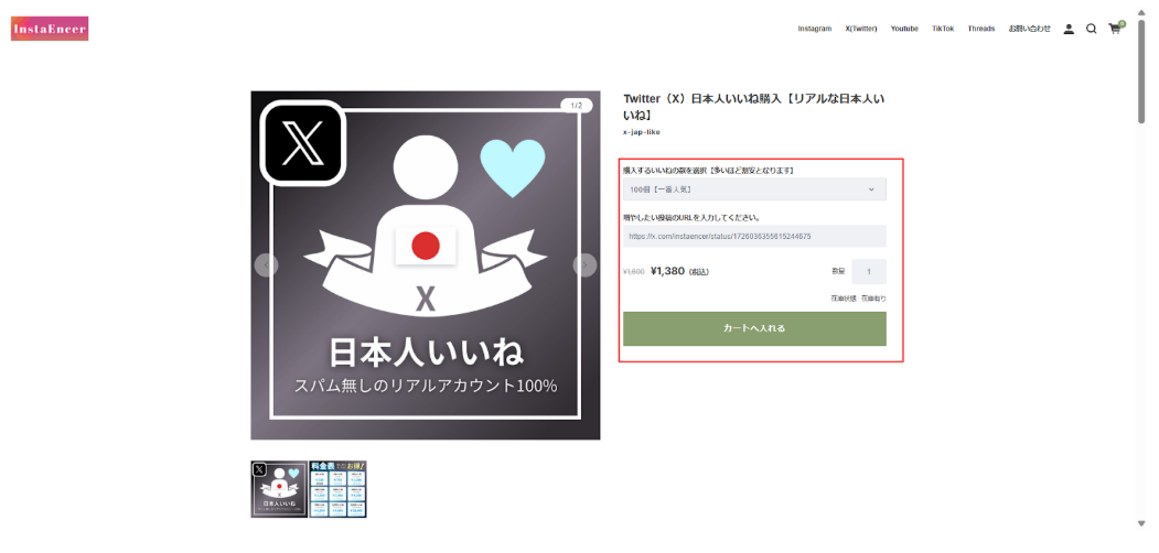 X(Twitter)のいいね購入におすすめのサービス:インスタエンサー