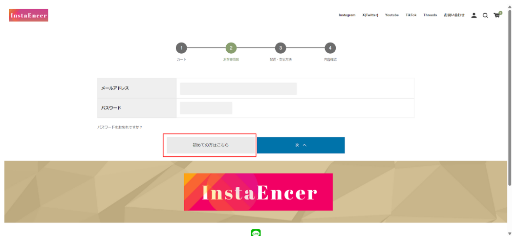 - 初めて購入する方は「初めての方はこちら」をクリック