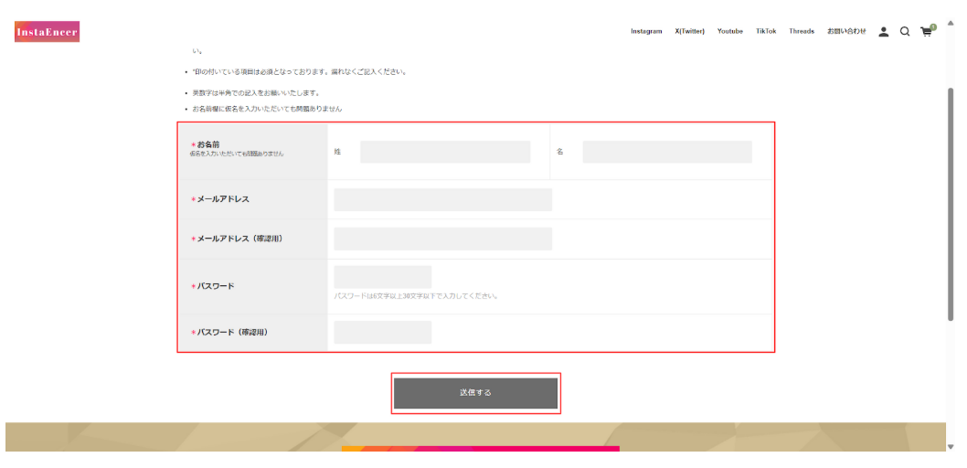 - お名前、メールアドレスなどを入力して「送信する」をクリック