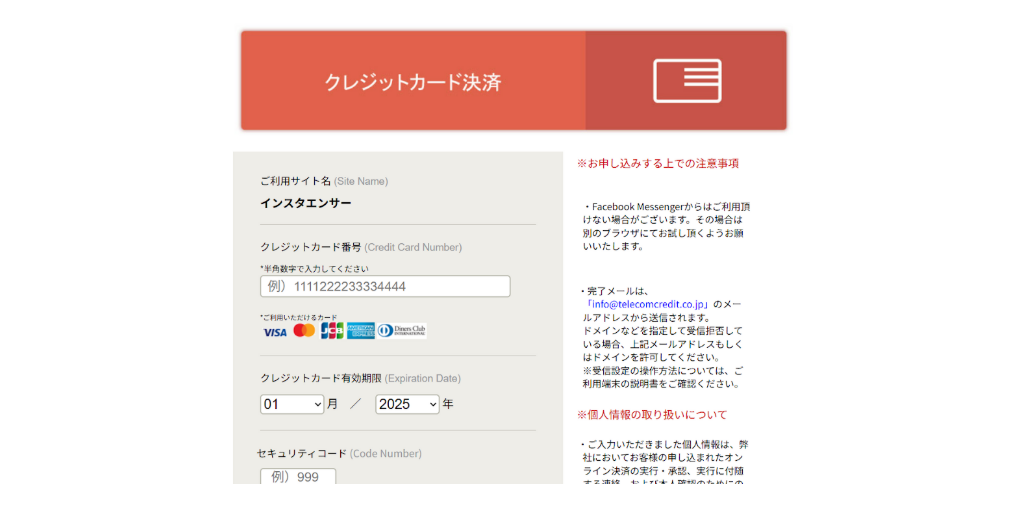 - クレジットカードの場合、必要情報を記入すれば購入完了